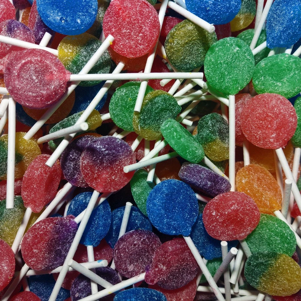 Mayceys Classic Lollies, Multi coloured Lollipops. Manufactured by Mayceys Confectionary here in New Zealand.