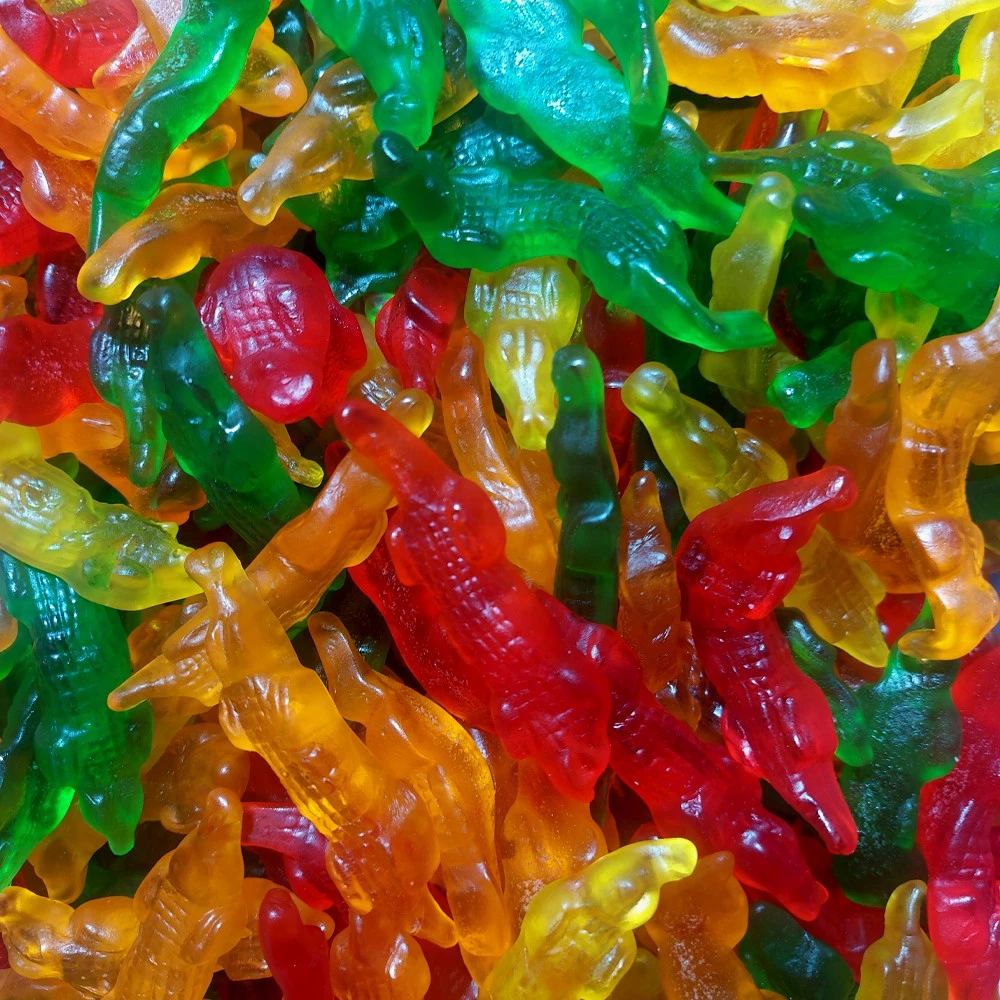 Four colours of delicious snappy crocodile shaped gummy lollies. Cricky mate! These little nippers are a fantastic gummy lolly to chew on.