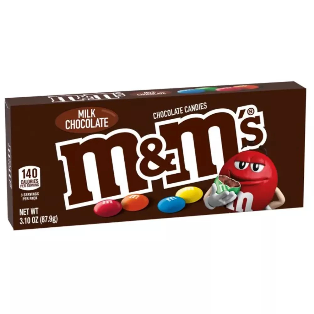 Milk Chocolate M&Ms in a 87.9g theater box. Classic Milk Chocolate Candies.