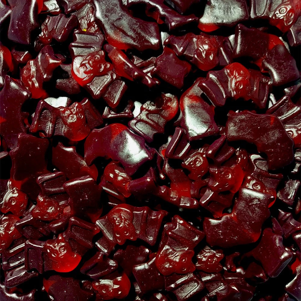 A delicious bat-shaped hard Gummy lolly by Mayceys Confectionary. Great Scary Bat Lollies for your Halloween Lollies Mix or as a nice little treat.