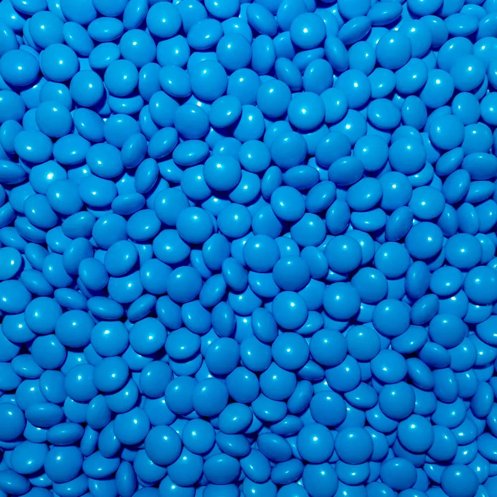 Blue coloured Chocolate Pebbles. Perfect for theming occasions, parties and events. AÂ Blue hard outer shell with a Chocolate inside.