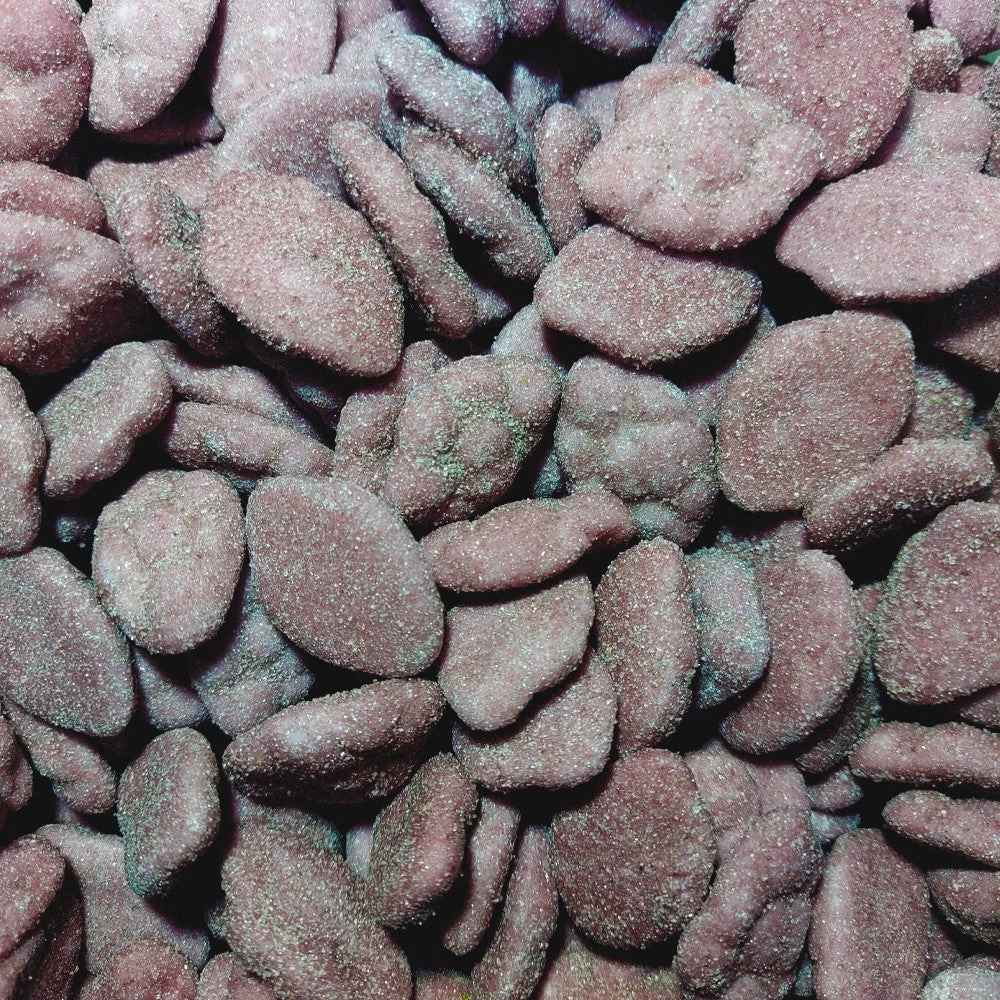 Grape Flavoured Purple Sugared Clouds. Lollies shaped like purple fluffy clouds with a purple sugar coating.