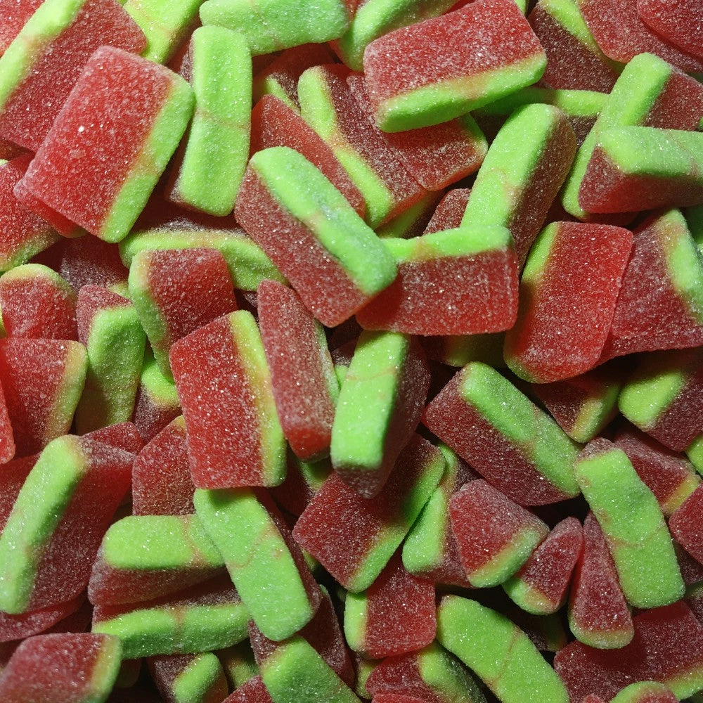 Tounge tingling sour watermelon slices. Delicious watermelon tasting lollies that look like the real deal, a slice of sweet tasting watermelon.