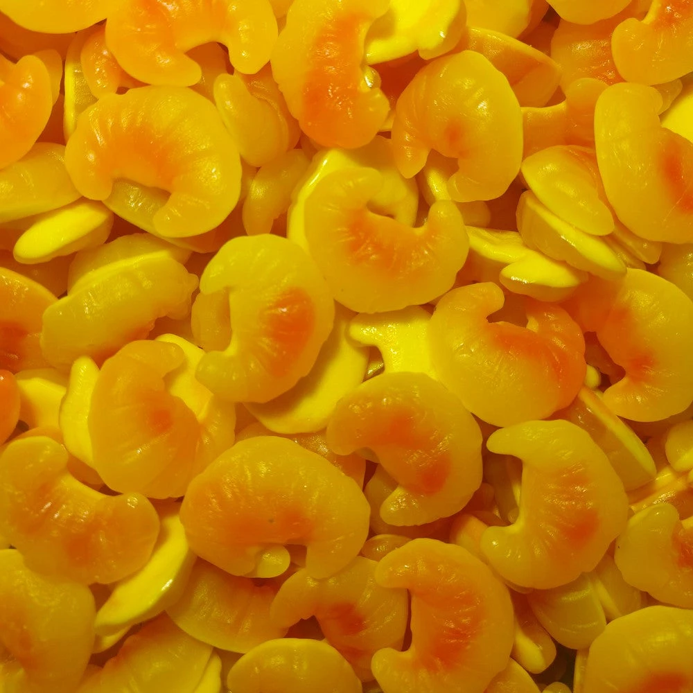 A Soft Gummy Croissant shaped lolly, filled with a gummy inside. Soft, Sweet and with such extreme details of looking like a real croissant. Croissant Lollies are delicious.